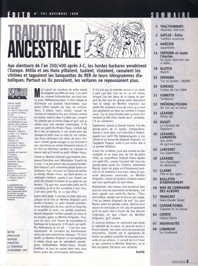 Sommaire : Cadeau anniversaire inclus n° 1 de Fluide Glacial