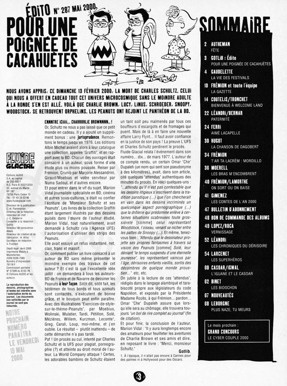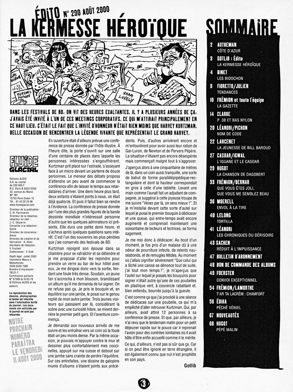Sommaire : couverture :Gaudelette. 4ème de couverture : Sachen. Edito : Léandri - Gotlib