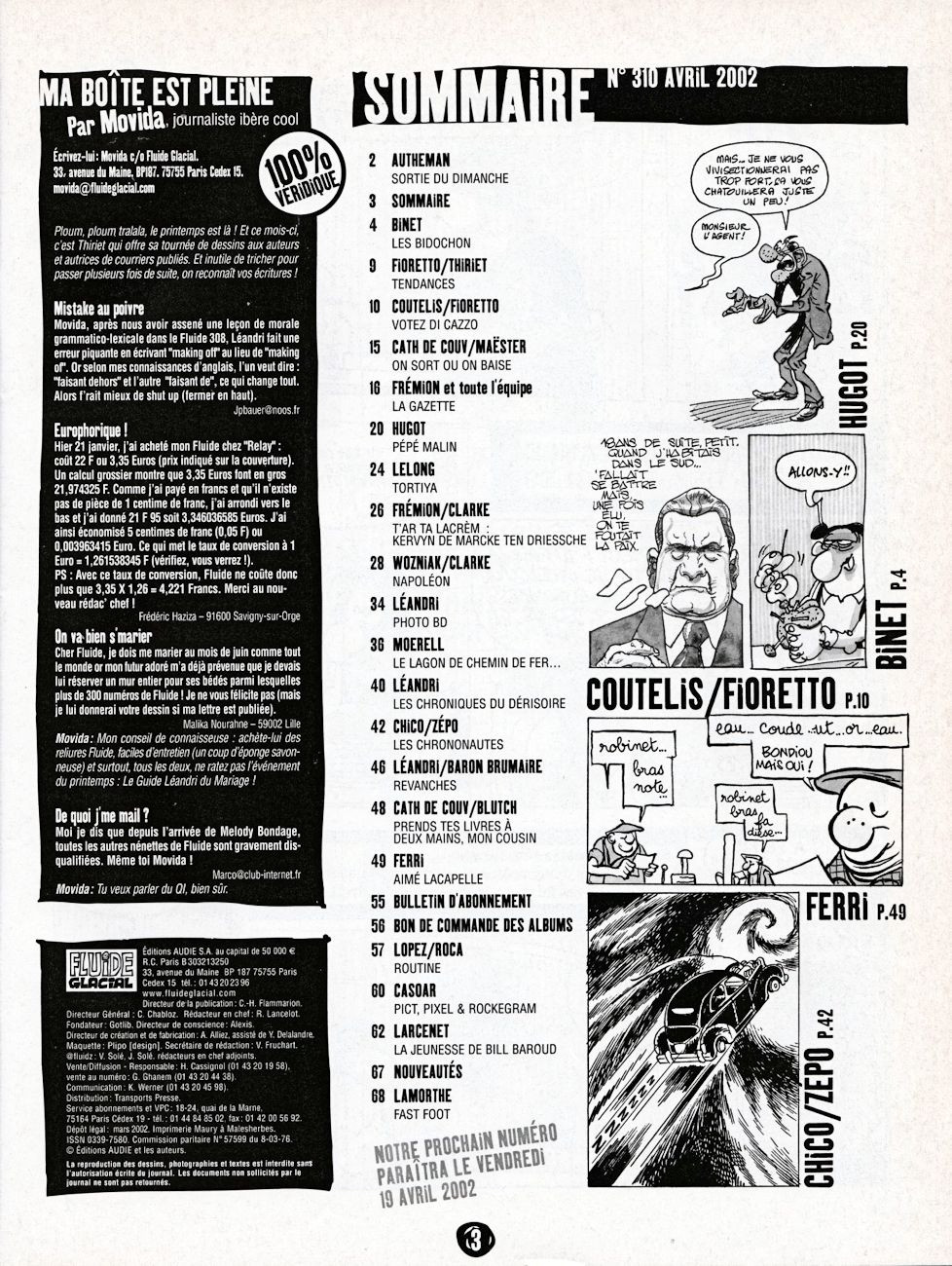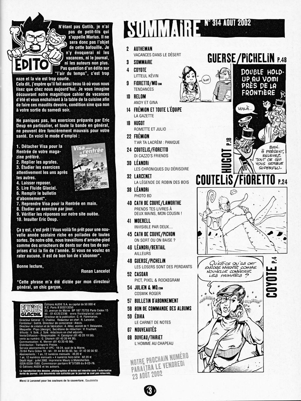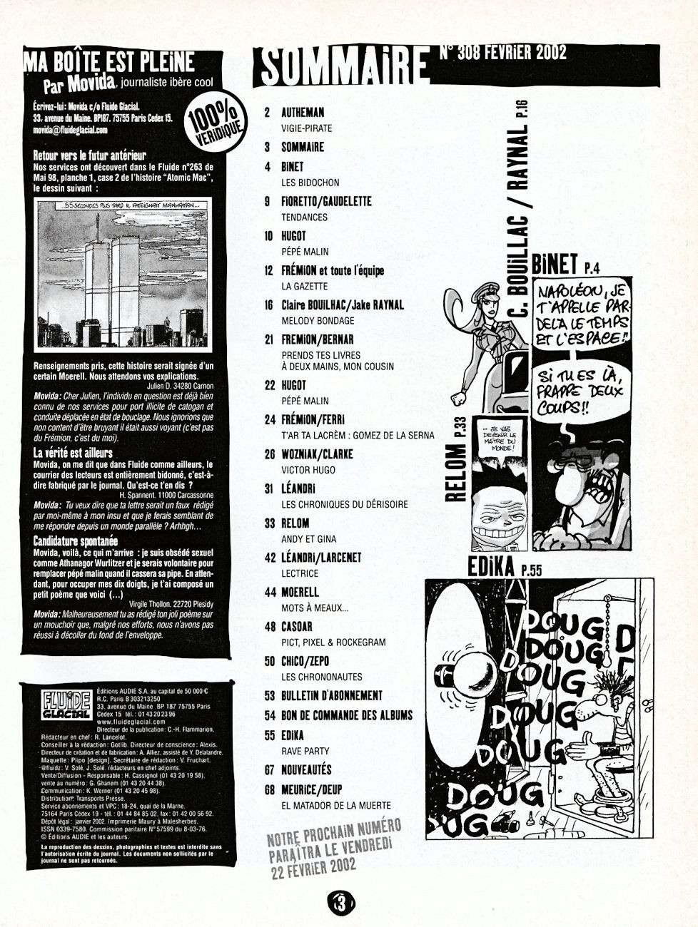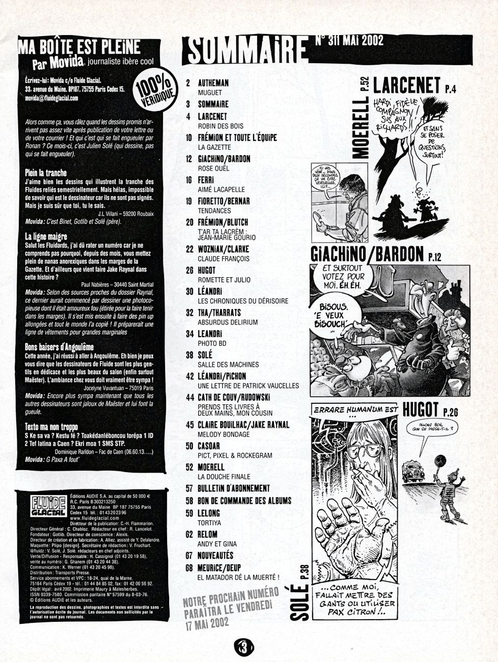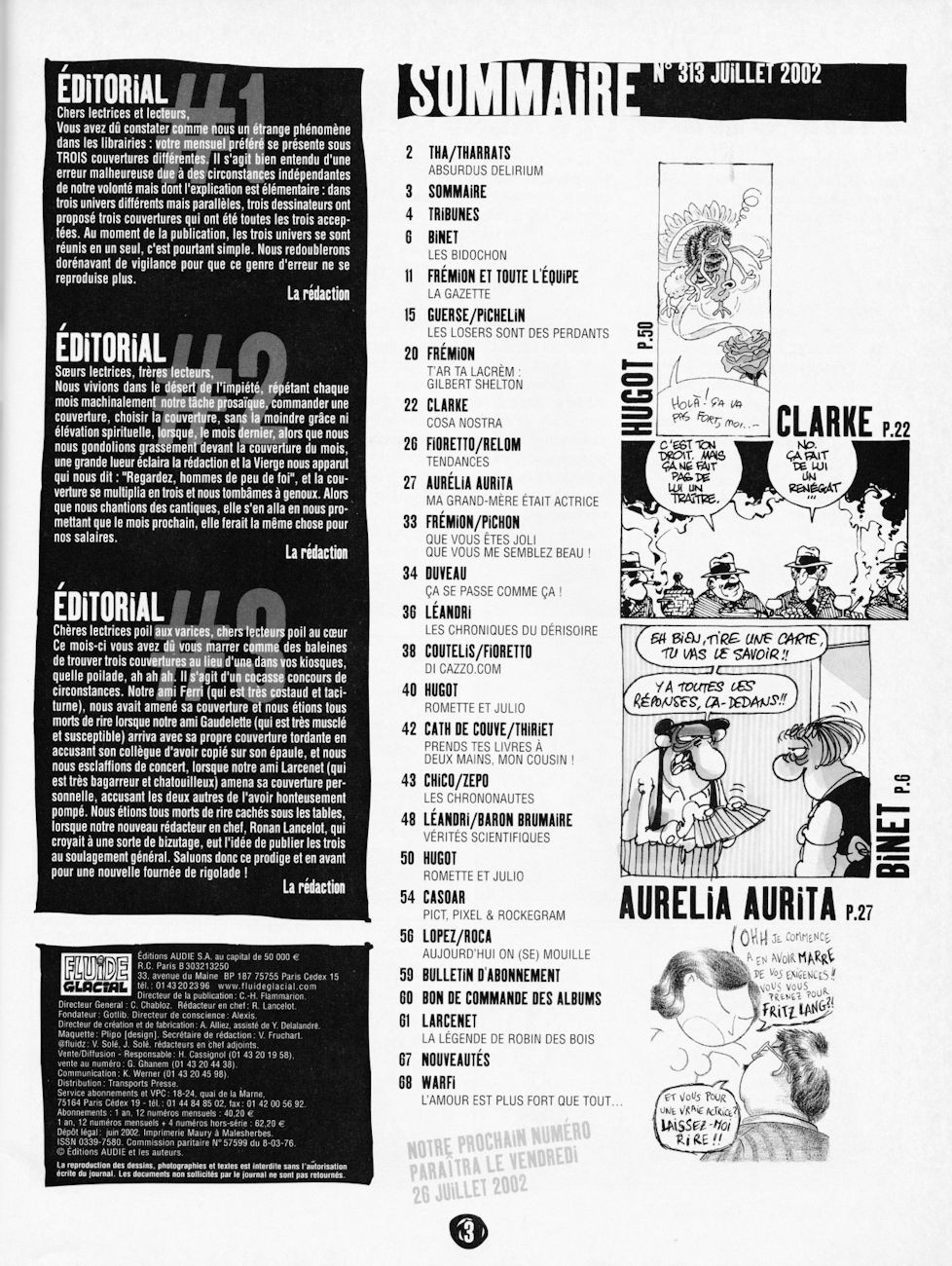 Sommaire : couverture avec rabat. Il existe trois couvertures pour ce numéro