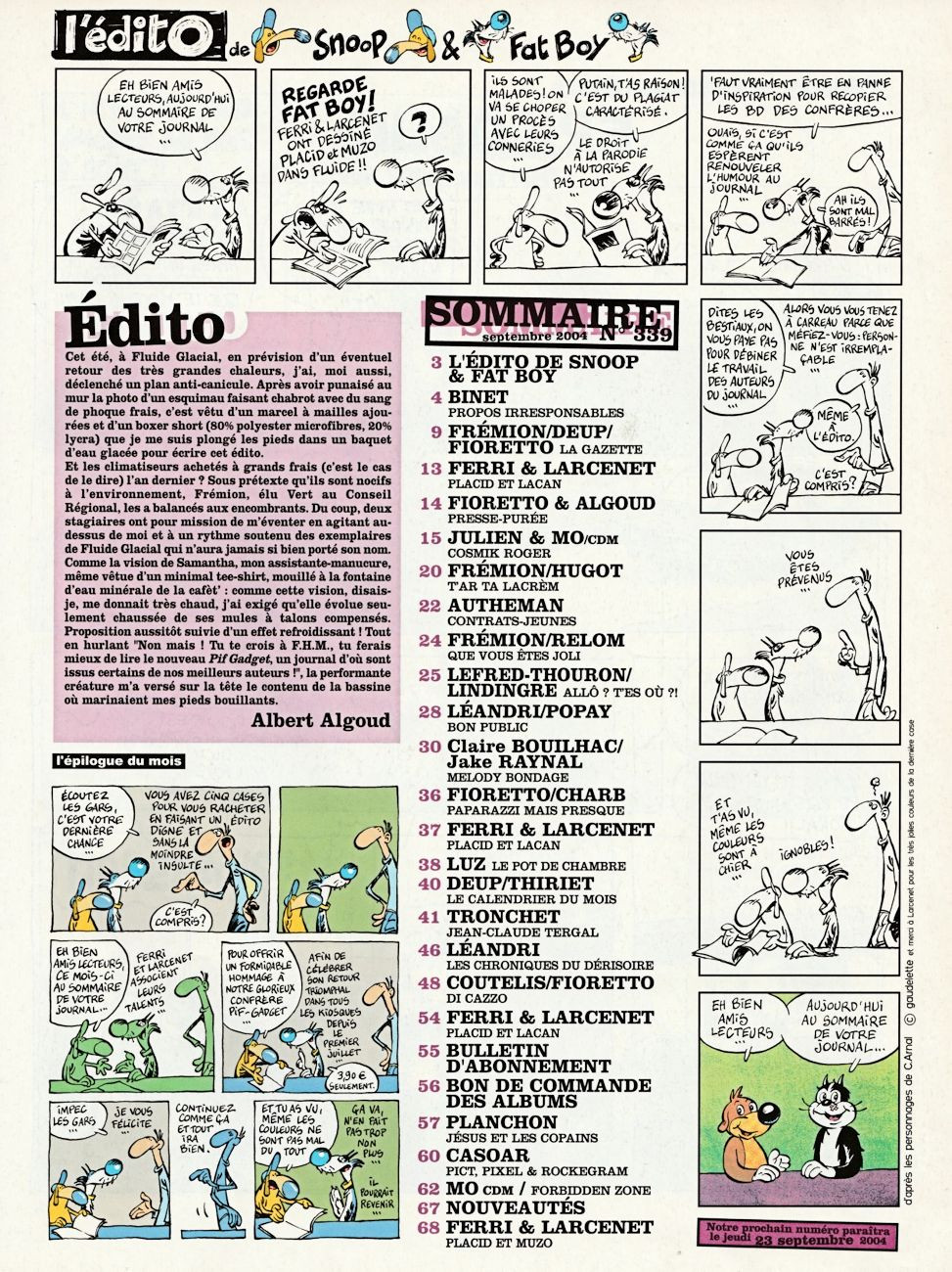 Sommaire : contient un supplément de 16 pages : "Visa pour la rentrée" image avec le rabat sur verso