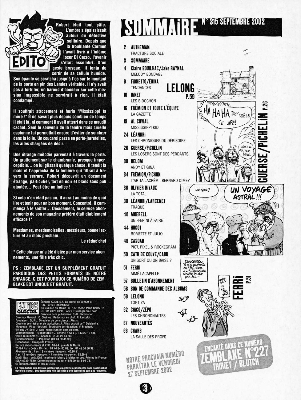 Sommaire : contient un supplément de 4 pages : "Zemblake"