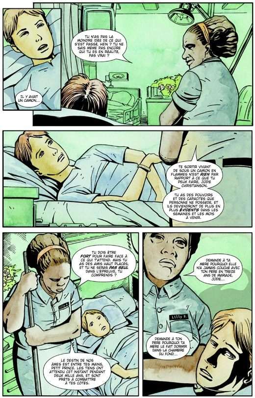 Comme tous les enfants de son âge, Jodie Christianson se sent différent, presque inadapté. Il n’est pas à l’aise avec ses camarades et se pose plein de questions.Jusqu’au jour où il survit à un accident dont personne n’aurait jamais dû sortir vivant : l’explosion d’un poids-lourd tombé d’un viaduc. Étrangement indemne, Jodie attire le regard de toute la communauté de sa petite ville, y compris des autorités ecclésiastiques. Sans une seule égratignure, il retourne à l’école et devient un élève surdoué, lui qui, auparavant, faisait partie des cancres.Tout le monde se pose des questions. Jodie le premier. Jusqu’à ce qu’on lui donne un livre, qui contiendrait peut-être une explication : La Bible.(source éditeur)