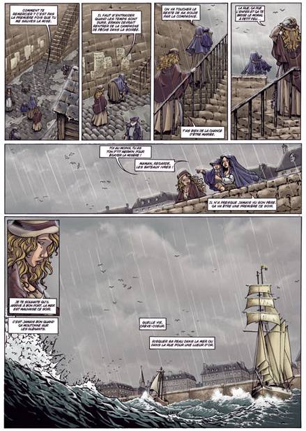 Dans l’épave échouée du bateau, elle retrouve le livre de bord de son époux, qui révèle un secret ancestral de marin : les Morriganes qui vivent dans les océans, et les chevaliers Sylvains, qui protègent les terres granitiques, s’affrontent depuis des siècles et engloutissent les navires dans leur sillage.