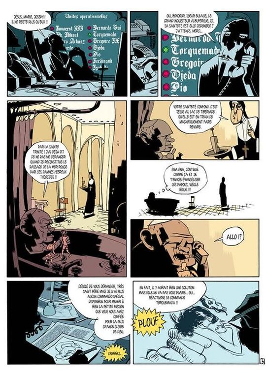 Le commando Torquemada est composé de Frère Malachie, empoisonneur auteur d'hallucinogènes, Feargal Mc Gowan, dandy british friand de calembours et d'explosifs et de la très, très, très sexy Sœur Sarah Terwagne. Ensemble, ils mettent leurs talents au service de l'ambition papale du Cardinal Albuferque qui dirige la Sainte Inquisition d'une main perverse, dans des aventures complètement barges, à l'humour totalement irrespectueux, souvent acide et toujours débile au bon sens du terme.