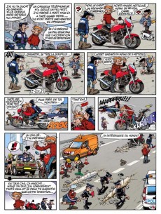 joe Bar Team a initié le genre, on retrouve ici le monde des motards, des gags désopilants, un dessin percutant inspiré du style Franquin.