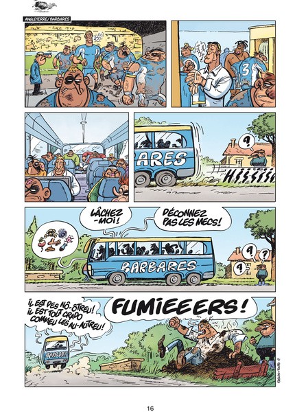 "On s'en fout pas mal du résultat ! Ce qu'il faut, c'est gagner ! " D'Angleterre en Argentine, d'Afrique du Sud en Nouvelle-Zélande, d'Italie en… France, Lagnak, Méphisto, Raging Bull et Aïoli vous ouvrent les portes de leurs vestiaires. Toujours accompagnés par des supporters parfois plus délirants que les joueurs eux-mêmes, ils vont vous faire vivre leurs aventures rugbystiques, vues par le petit bout de la lorgnette. Suivez-les dans ce tour du monde sportif et humoristique !