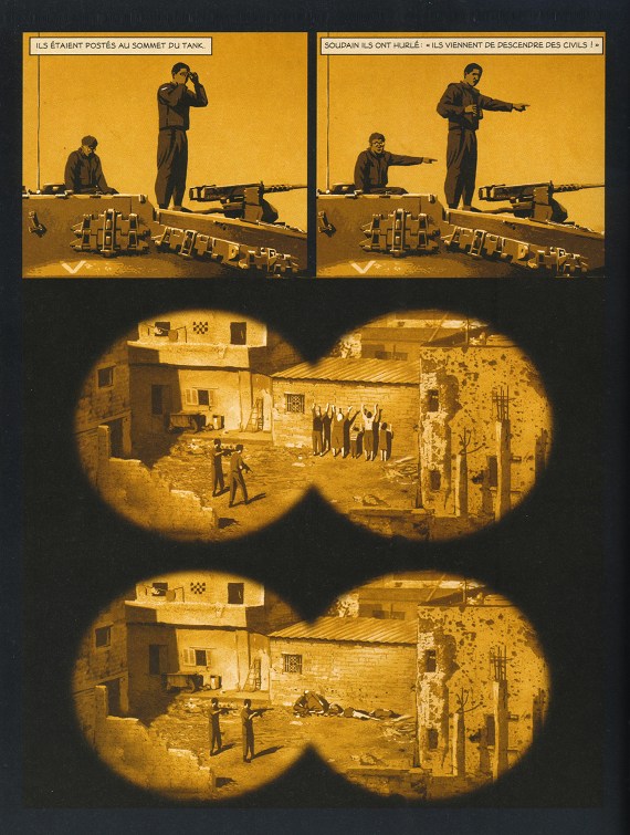Après le cinéma, voici donc la version bande dessinée de Valse avec Bachir. Elle est directement issue des images du film sous la supervision de son réalisateur Ari Folman et de son directeur artistique David Polonsky. On y retrouve, intacts, l'esthétique semi-réaliste et le traitement chromatique si particuliers qui, outre la puissance et l'originalité de son propos, signent la singularité de Valse avec Bachir.