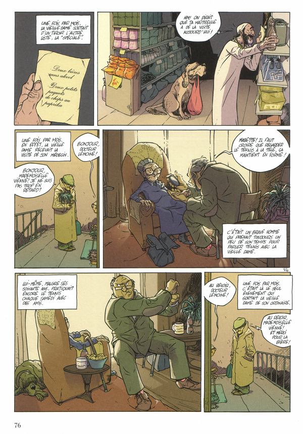 Benoît Zidrou nous invite à un voyage similaire avec les gens qui nous entourent. Qui ose faire connaissance avec la vieille dame d'en face ? Sait-on qu'elle rêve de jouer sur le court central de Roland-Garros ? Qui peut dire que cet homme gris et triste, qui a laissé un fossé se creuser entre lui et ses enfants, sera le premier qui prendra dans ses bras ce petit bout d'homme au corps déformé par la maladie ?
