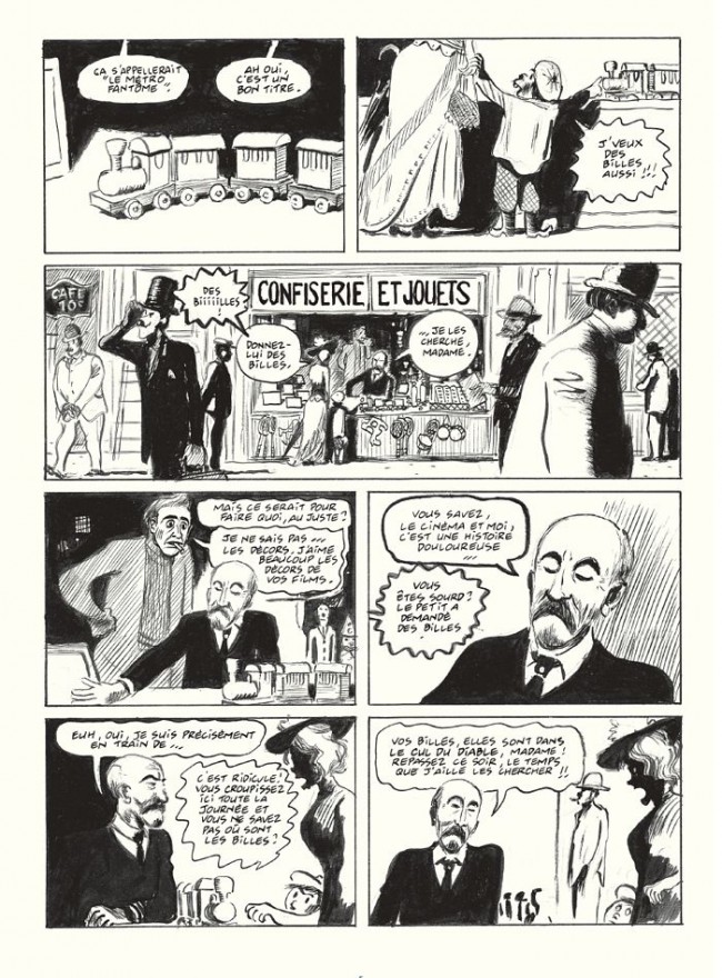 Georges Méliès fut véritablement l'inventeur du cinéma moderne, le premier à réaliser des effets spéciaux, une révolution pour l'époque ! Mais il est aussi un personnage hors norme qui fut prestidigitateur, réalisateur, décorateur, scénariste, acteur... Il fréquenta Prévert, Houdini, les frères Lumière et les surréalistes firent de lui l'une de leurs icônes. Sans doute trop en avance sur son temps, Méliès connut pourtant de gros problèmes financiers et finit sa vie en tenant une boutique de jouets ! Cet album lui rend hommage en racontant une suite d'histoires courtes dans lesquelles l'esprit et la magie de Méliès perdurent.