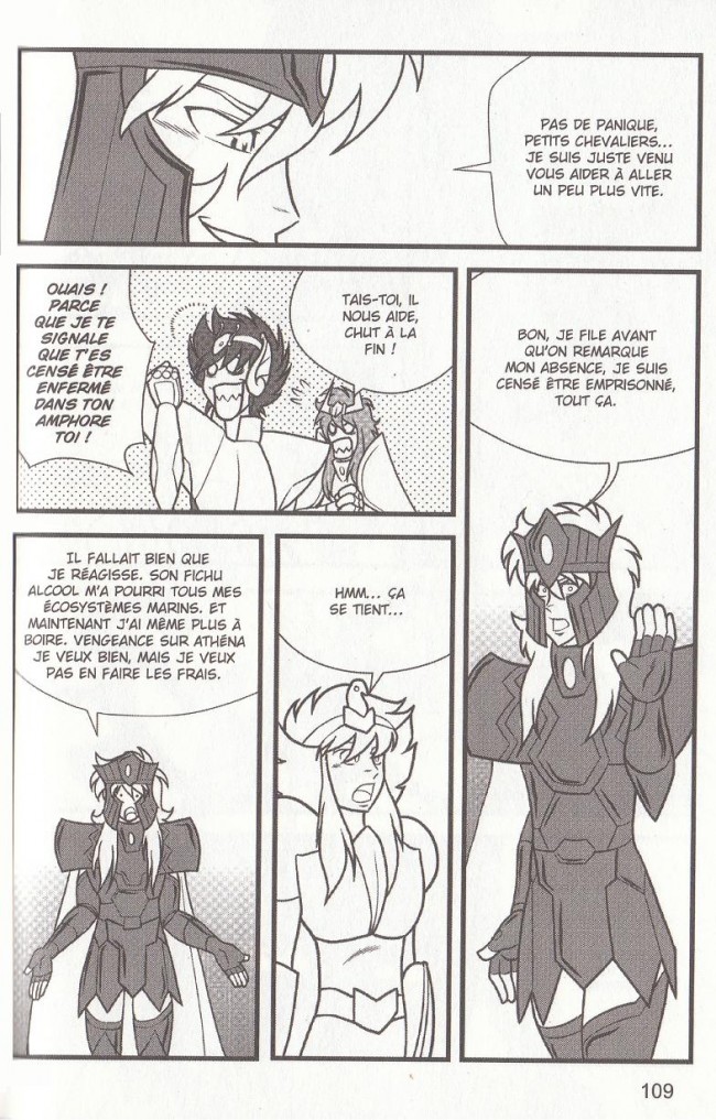 Ce one-shot nous place après la bataille d'Hadès. Nos 5 chevaliers de bronze s'ennuient dans un monde en paix et décident de provoquer les dieux en leur envoyant une lettre d'insultes pour pouvoir se battre. C'est Dionysos (écrit avec une faute dans le manga, et elle n'est pas intentionnelle), le dieu du vin, qui y répondra et se dressera devant nos héros. Il sera évidemment accompagné de ses 7 fidèles guerriers de l'alcool.