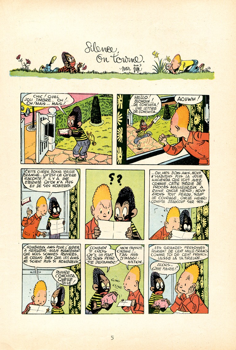 Info édition : Blondin et Cirage reçoivent une lettre de Conchita leur annonçant la ruine de son oncle et la perte de tous leurs biens. Cirage décide de la faire venir, mais faute d’argent, il participe à des jeux télévisés. Au lieu d’argent, il y gagne un éléphanteau. Le producteur Bob Rustler, ayant renvoyé son acteur, choisit d’engager l’animal ainsi que Blondin, Cirage et Conchita pour son prochain film. Furieux, l’acteur évincé et son agent Archibald Goldfish montent un plan de sabotage. Ils s’allient à l’ancien […]