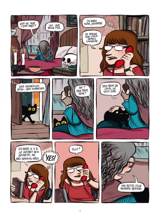 Quand Madame Divina passe, le surnaturel trépasse ! Et Madame Divina, ça n'est autre que Mina, la petite soeur de Carmilla ! Cette chipie surdouée s'est entichée de magie noire ! Aidée de "Grimoire", super programme informatique doté d'une personnalité (et d'un sale caractère), elle propose des consultations en ligne pour résoudre les problèmes surnaturels qui se posent à tout un chacun. Mais, à son grand dam, Mina ne tombe la plupart du temps que sur de minables histoires de cœur ! Sauf qu'un jour, une jeune bibliothécaire perd connaissance dans "l'Enfer", la partie de la bibliothèque où sont stockés les livres interdits qu'affectionne Mina… Il ne lui en faut pas plus pour se lancer dans une enquête pleine de magie et d'humour !Lorris Murail nous propose un excellent spin-off de la série Le Journal de Carmilla, toujours servi par le dessin rond et acidulé de Laurel.