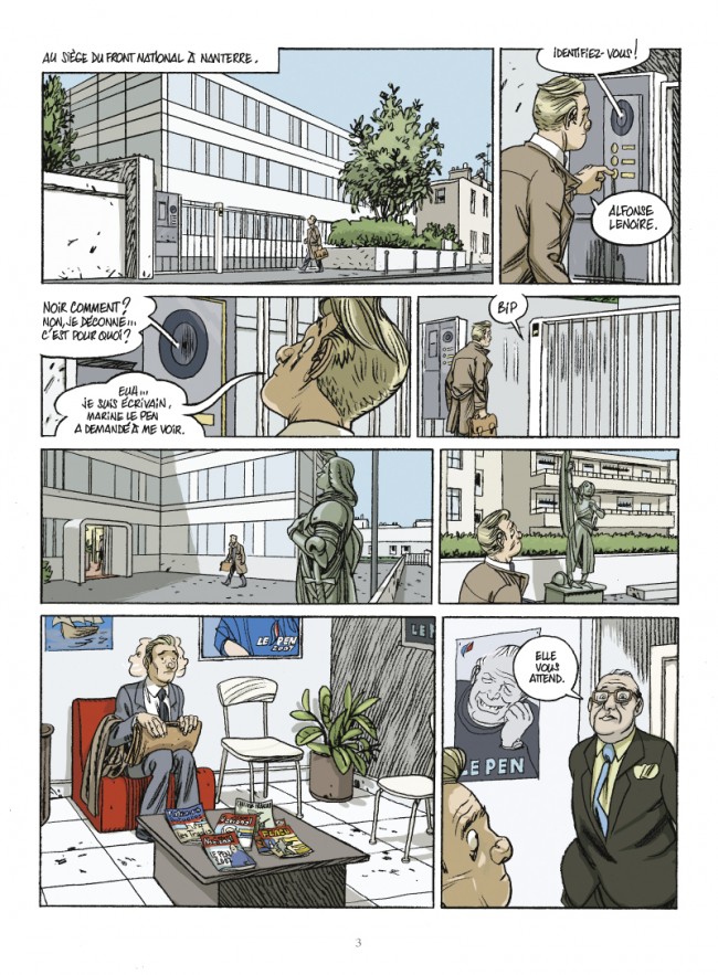 MARINE LE PEN, UNE CANDIDATE COMME UNE AUTRE ? À l'aube d'une élection présidentielle capitale, le cas Marine Le Pen divise : peut-on la considérer comme une candidate comme une autre ? N'est-elle qu'un visage plus jeune des idées de son père ou l'incarnation d'un nouveau nationalisme ? Qui est réellement cette femme qui fascine autant qu'elle révulse ? C'est à ces questions que Caroline Fourest a tenté de répondre en enquêtant sur sa vie : sa famille si singulière, sa jeunesse dans le sérail du FN, sa vie de château, les problèmes qu'ont pu lui causer son nom de famille, ses études d'avocate, son goût pour la fête, ses amitiés étonnantes, les coulisses de la conquête du parti jusqu'au passage de flambeau Marine Le Pen, trop souvent perçue à travers limage figée de commandeur taillée par son parti, n'aura plus aucun secret pour vous après la lecture de cette BD-enquête écrite par la journaliste Caroline Fourest (qui lui a consacré une récente biographie très complète publiée chez Grasset) et impitoyablement croquée par Jean-Christophe Chauzy.