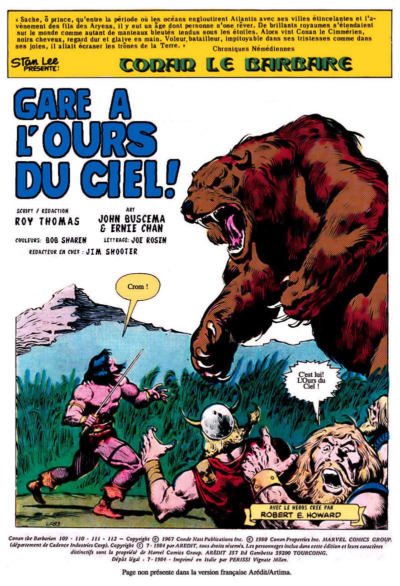 Info édition : Contient : Conan, « Le fils du démon » (Christie Marx, Roy Thomas, John Buscema, Ernie Chan) (Conan the Barbarian (Vol.1) #113 "A Devil in the Family !" , 17 pl.) + Red Sonja, « La couronne maudite ! » (Clair Noto, Roy Thomas) (Red Sonja (Vol.1) #13 "Shall Skranos fall ?", John Buscema, Al Milgrom + #14 "An Evening on the Border", Sal Buscema, Al Milgrom + #15 "The Tomb of three dead Kings", John Buscema, Tony DeZuniga), 47 pl. Plusieurs cases ou planches de Red Sonja ont été enlevées pour faire […]