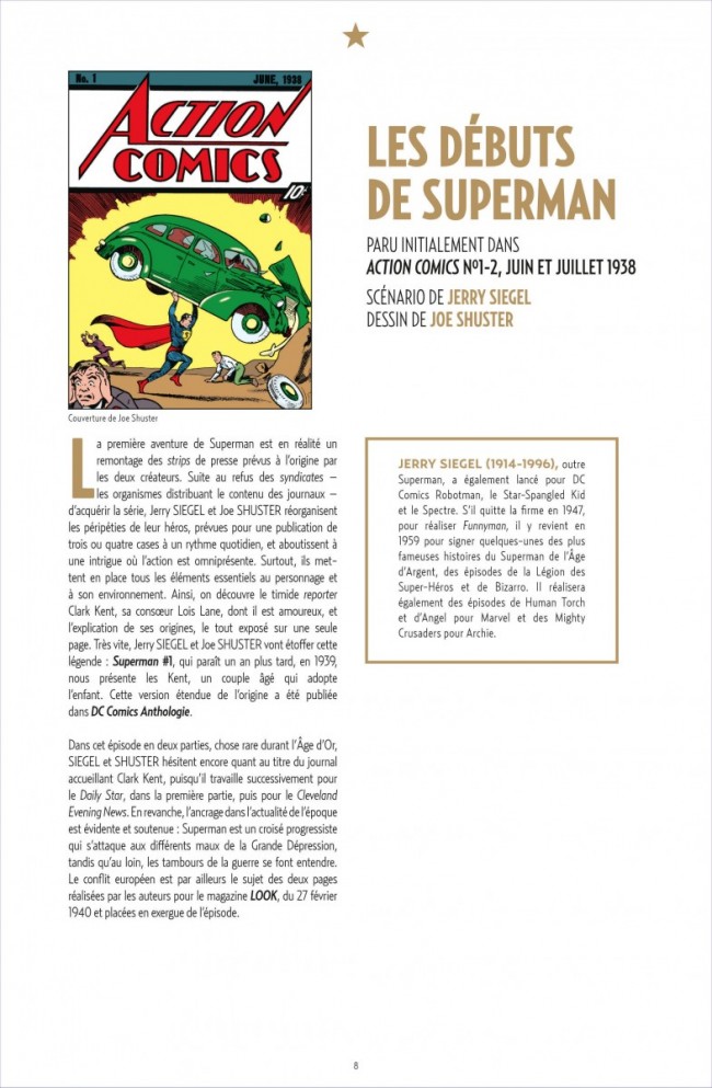 Info édition : Contient des épisodes tirés de : Action Comics #1-2 (1938), Jerry Siegel & Joe Shuster Superman #17 (1942), Jerry Siegel, Joe Shuster & John Sikela Superman #53 (1948), Bill Finger, Wayne Boring & Stan Kaye Action Comics #242 (1958), Otto Binder & Al Plastino Superman #141 (1960), Jerry Siegel, Wayne Boring & Stan Kaye Superman #149 (1961), Jerry Siegel, Curt Swan & Sheldon Moldoff Superman #247 (1972), Elliot S. Maggin, Curt Swan & Murphy Anderson Action Comics #544 (1983), Marv Wolfman & Gil Kane […]