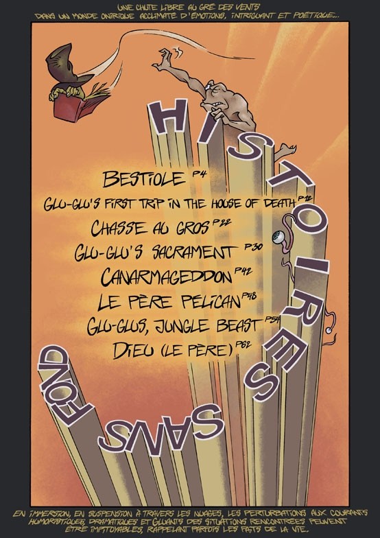 « Histoires sans fond », composé de courts récits dessinés de manière très libre et intuitive, est une chute libre au gré des vents dans un monde onirique acclimaté d’émotions, intriguant et poétique.