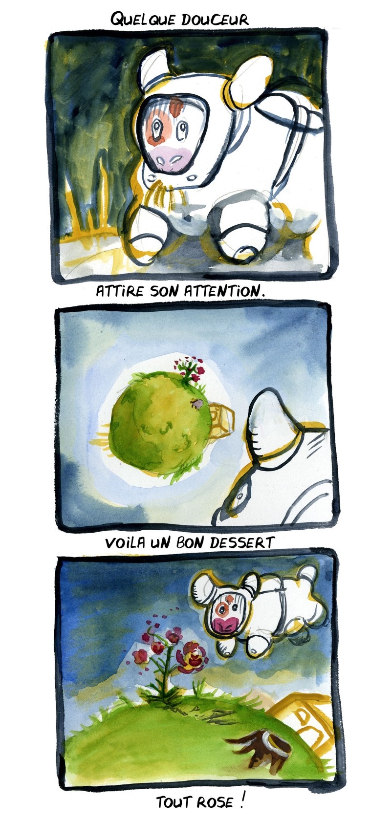 Les aventures d'une petite vache dans l'espace, un récit sur la tolérance et l'amitié, pour petits et grands enfants.