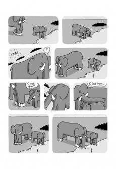 Par solidarité avec un petit dont la mère vient de se faire tuer pour son ivoire, les éléphants décident de commettre un attentat suicide au pays des hommes. C’est le carnage. Une souris, dont l’ami s’est fait trucidé par un piège à fromage, tente de copier le mode opératoire des éléphants. C’est juste une tentative ratée et un suicide inutile.