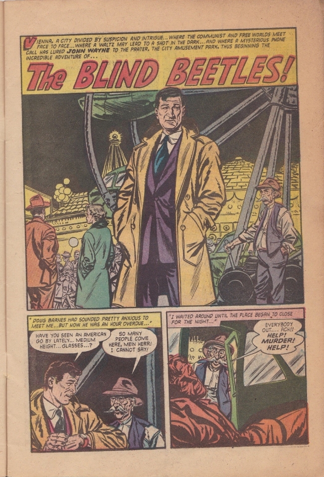 John Wayne Adventure Comics est une série de bandes dessinées publiées par Toby Press et mettant en vedette la star américaine. Les couvertures étaient souvent composées de photographies de ses films et l'éditeur publia 31 numéros de cette série (hiver 1949/1950–Mai 1955) ainsi qu'un album de poche "collector" : John Wayne: The Cowboy Trouble-Shooter! (Oxydol/Dreft pocket-sized premium)