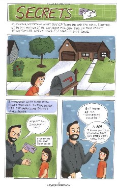 In this delightfully composed graphic novel, journalist Sandell (Glamour) illustrates a touchingly youthful story about a daughter's gushing love for her father. Using a winning mixture of straightforward comic-book illustrations with a first-person diarylike commentary, Sandell recounts the gradual realization from her young adulthood onward that her charming, larger-than-life Argentine father, bragging of war metals, degrees from prestigious universities and acquaintances with famous people, had lied egregiously to his family about his past and accomplishments. Growing up with her two younger sisters and parents first in California, then in Bronxville, N.Y., the author records signs along the way that her father, a professor of economics with a volatile temperament and autocratic manner, was hiding something, from his inexplicable trips out of town, increasing paranoid isolation, early name change from Schmidt to Sandell, to massive credit-card fraud. Interviewing her father for her first magazine article, the author resolved to check his sources and even flew later to confront his past in Argentina, only to discover the truth. Feeling betrayed, guilty for exposing him and mistrustful in her relationships with men, Sandell numbed herself by abusing Ambien and alcohol. Her depiction of her rehab adventure is rather pat and tidy, and she does not address the notion that her own creativity might have sprung from her father's very duplicity. However, Sandell's method of storytelling is marvelously unique and will surely spark imitators.
