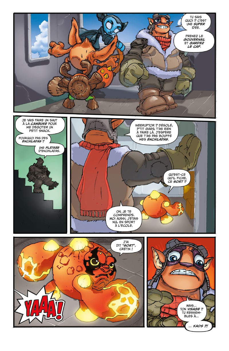 Petits mais costauds. Alors que les Skylanders sont sur le chemin du retour pour la Skylanders Academy, Flynn le pilote découvre par hasard que Kaos, le prince déchu en personne, est à bord de leur vaisseau ! Victime de l'un de ses sorts, Flynn perd la mémoire et saute de l'appareil en plein vol, laissant les Skylanders seuls aux commandes ! Et ce n'est rien en comparaison du véritable plan machiavélique de Kaos : en prenant l'apparence de Weeruptor, ce dernier compte détruire la Skylanders Academy de l'intérieur...