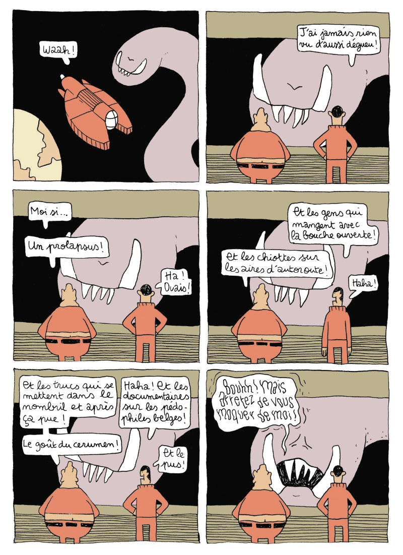 Trois aventuriers sont envoyés dans l'espace pour une mission secrète de la plus haute importance. Le problème : ils ignorent tout de leur mission. L'histoire se déroule par un enchaîné de gags en une page, qui commencent toujours par la même case (plan large du vaisseau). Un space opéra décalé, mêlant métaphysique et absurde.