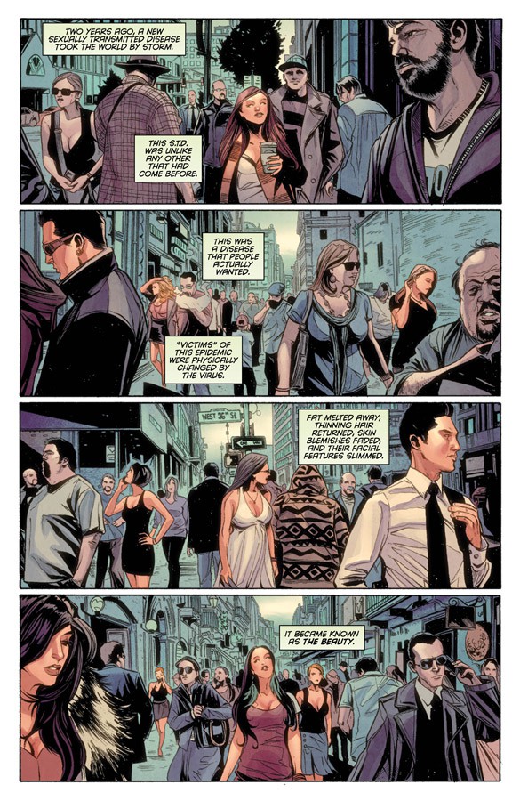 Modern society is obsessed with outward beauty. What if there was a way to guarantee you could become more and more beautiful every day? What if it was a sexually transmitted disease? In the world of The Beauty, physical perfection is only one sexual encounter away. The vast majority of the population has taken advantage of it, but Detectives Vaughn and Foster will soon discover it comes at a terrible cost. Now, they'll have to find their way past corrupt poiticians, vengeful federal agents, and a terrifying mercenary out to collect the price on their heads.