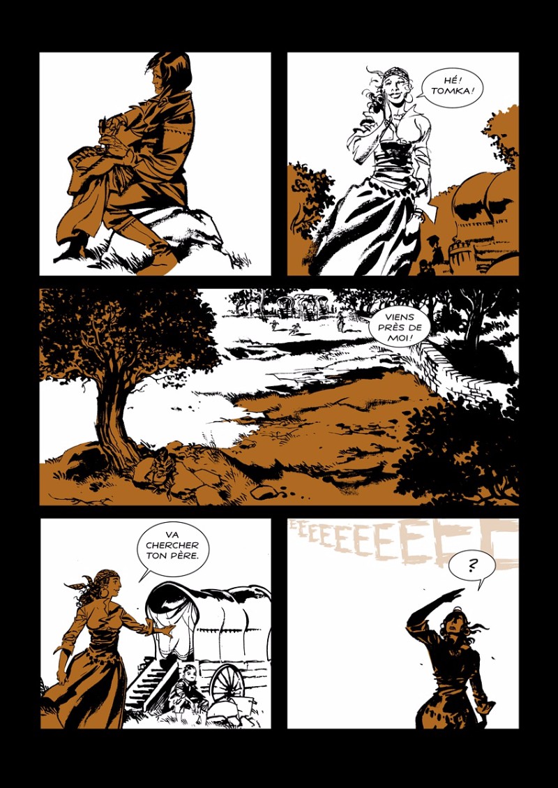 C’est par des images puissantes et évocatrices, par des dialogues courts et secs, que Massimo Carlotto et Giuseppe Palumbo nous plongent au cœur d’un conflit emblématique : le dernier moment de notre histoire récente où – comme le dit Carlotto – « les paroles de chansons et le sens des rêves ont eu une chance de devenir réalité ». Carlotto et Palumbo ont choisi de laisser les faits historiques en toile de fond pour dégager avec plus de force les traits de leurs personnages : Tomka le gitan qui se bat pour venger les siens, mais aussi le syndicaliste noir américain qui a fui les racistes du Klan ou le gradé des troupes marocaines, chair à canon des franquistes, qui se dresse contre ses supérieurs. Dans les histoires de ces personnages, marginaux aux enjeux de cette Guerre civile mais inéluctablement happés par son engrenage infernal, revit – loin de toute rhétorique – la mémoire de tous ceux qui se sont battus jusqu’à la mort contre le fascisme et pour leurs idéaux.