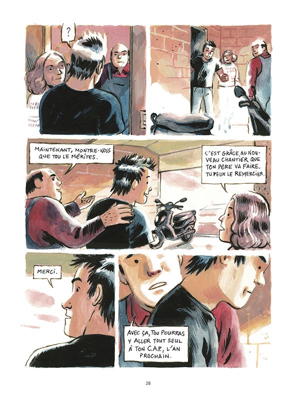 Raoul, beau gosse, look de bad boy, sort d’un petit pavillon moderne et sans âme. Il pousse un scooter flambant neuf que son père, entrepreneur en bâtiment, vient de lui offrir. Il part retrouver sa bande de potes : Jessica la punkette révoltée, Ludo le bon vivant et Aurélie la ravissante métisse que Raoul courtise un peu.