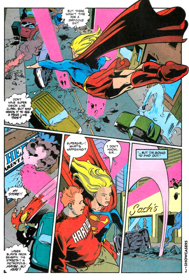 Showcase '95 contient trois histoires distinctes, chaque numéro mettant en vedette quelqu'un de la famille Superman. Cette nouvelle version de Showcase présentait également de nombreux écrivains et artistes émergents qui allaient créer d'autres séries.
