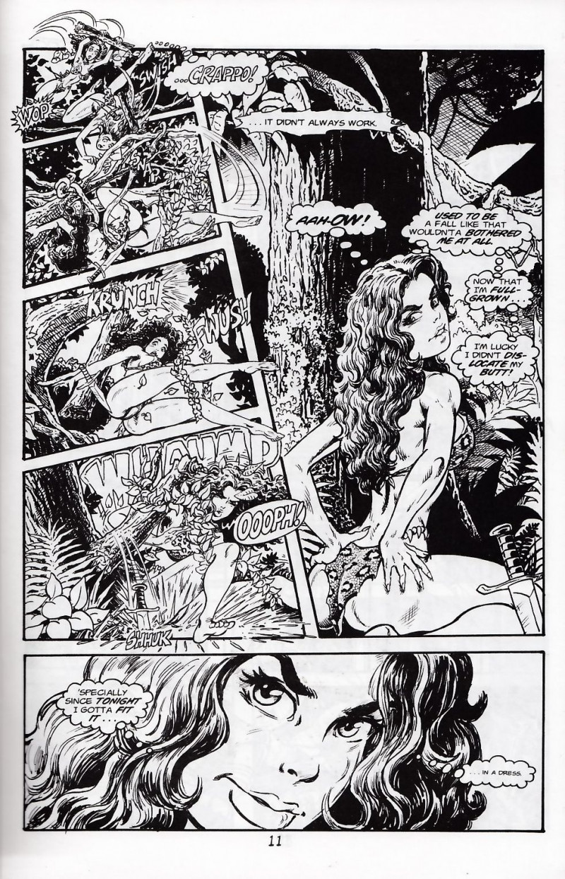 Cavewoman has always had a not-entirely professional quality to it. The weakness in the art becomes apparent whenever the story (a distillation of just about every B-movie cliché imaginable) wanders from what creator Bud Root clearly thinks of as “the good parts” — the barely dressed Meriem and King Kong look-alike Klyde. They’re always lovingly depicted, but less-important cast members tend to look like Mort Drucker caricatures.