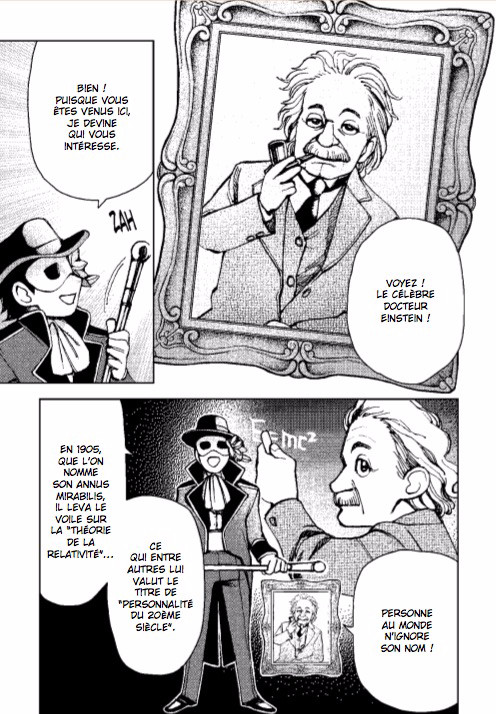 En commençant par les philosophes naturalistes de la Grèce antique, l'humanité n'a eu de cesse de faire progresser les sciences et les techniques durant sa longue Histoire. Einstein, que l'on décrit comme le plus grand physicien du XXe siècle, énonce dans sa "Théorie de la relativité" que plus on s'approche de la vitesse de la lumière, plus notre temps ralentit et plus les objets rétrécissent ... ? Mais quelle réflexions ont bien pu mener à une telle théorie, qui va vraisemblablement va à l'encontre du sens commun... ? Toutes les subtilités du traité original, au format manga !