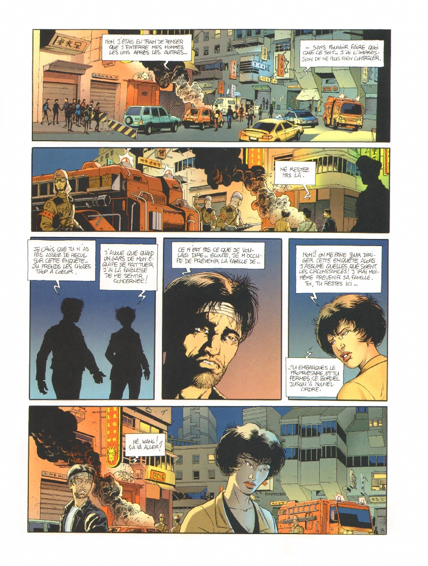 Visiblement, bien des auteurs s'engrouffrent dans l'actualité. Surtout quand elle est prévisible des années à l'avance, comme c'est le cas pour la rétrocéssion de Hong-Kong. Ce qui fait plaisir, c'est que même si les auteurs n'y sont pas allés, ils se sont éclatés à créer une histoire de politique-fiction. Un bon polar placé dans dix ans, avec une bonne pointe d'ironie et d'auto-dérision.