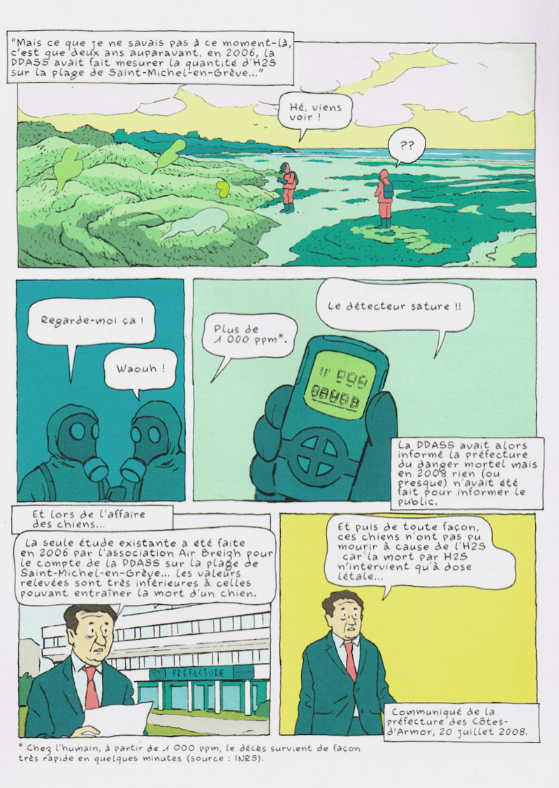 avant d’être autopsiés, des jeux d’influence, des pressions et un silence de plomb. L’intrigue a pour décor le littoral breton et elle se joue depuis des dizaines d’années. Inès Léraud et Pierre Van Hove proposent une enquête sans précédent, faisant intervenir lanceurs d’alerte, scientifiques, agriculteurs et politiques.