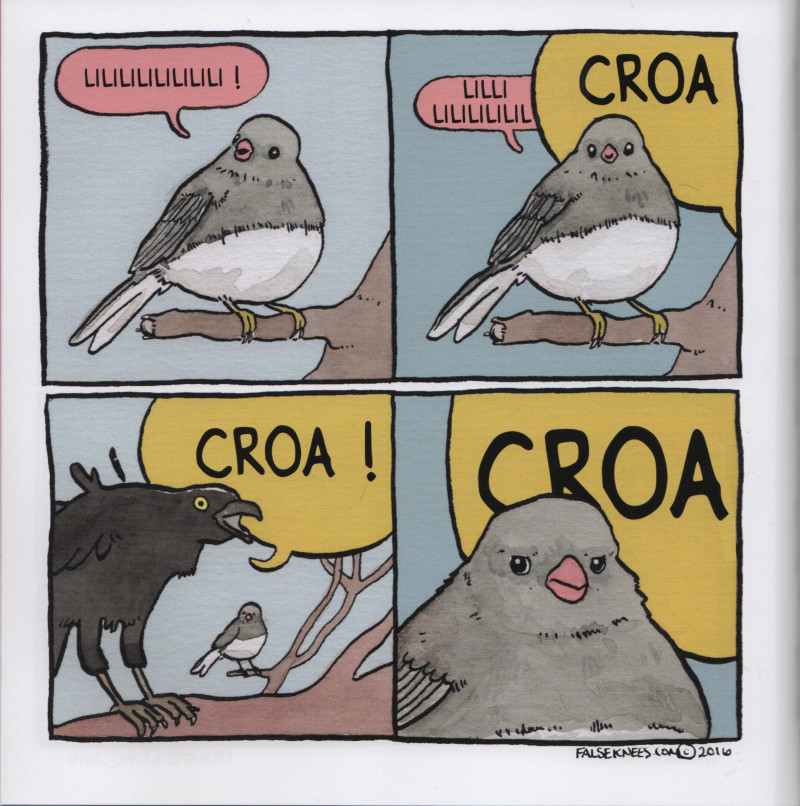 Quand on regarde voleter nos amis les oiseaux, ça nous évoque tant de douceur et de souvenirs merveilleux. Mais ce qu’on ne sait pas,c’est que les oiseaux sont de gros enfoirés de leur race avec des préoccupations au ras des paquerettes, un sens de l’esthétique tout pourri et un QI de 2.