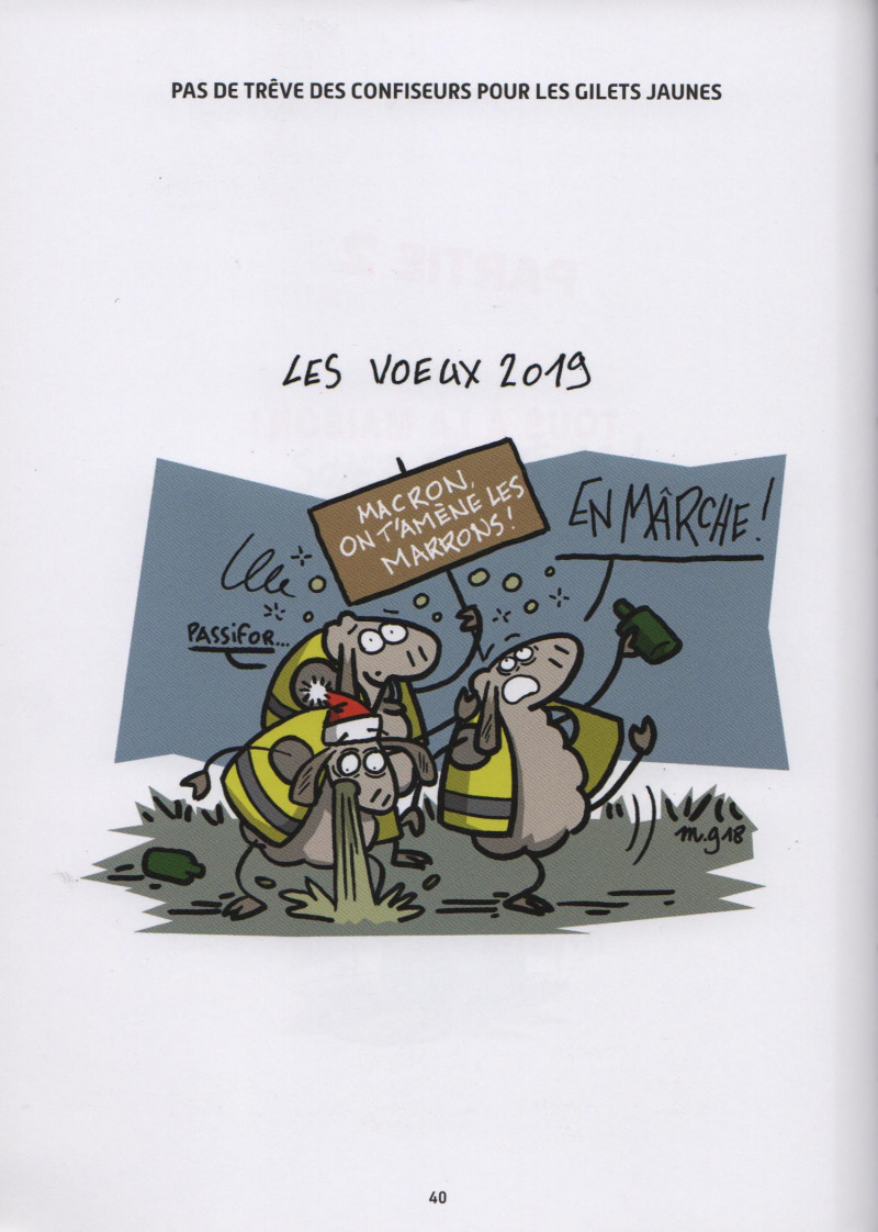 Un peu d'humour pour marquer les 1 an des gilets jaunes, le plus grand mouvement populaire depuis mai 68. Des autoroutes bloquées, des affrontements hebdomadaires avec la police, une surexposition médiatique surprenante, 10 milliards d'euros débloqués... L'Histoire jugera. Ce petit livre est une réaction à chaud, au fil du déroulement de ces évènements et de la façon dont le gouvernement a réagi. 60 % des dessins ont été diffusés sur Facebook, le reste est inédit.
