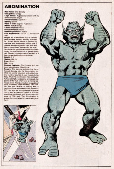 Le OHOTMU présente une fiche détaillée sur chaque personnage, objet ou lieu significatif de l’univers Marvel. La fiche est généralement composée :