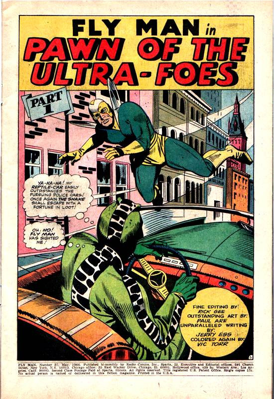 The Fly est un personnage de comics créé par Joe Simon et Jack Kirby en 1959 pour Archie Comics. La série "Adventures of the Fly" dure jusqu'au n°30 puis change de nom et devient "Fly Man" du n°31 jusqu'au n°39 et dernier. En deuxième partie on retrouve les aventures du Shield, autre héros de l'éditeur.