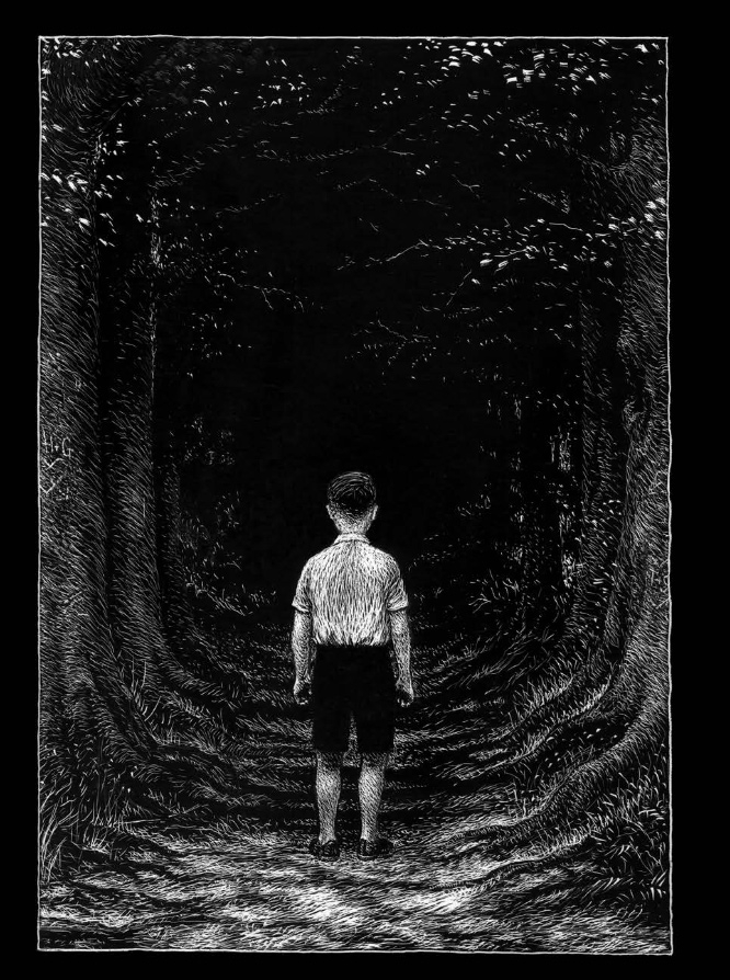 Une histoire courte, sans paroles, en 25 grandes images qui conduisent un jeune garçon à fuir au plus profond d’une forêt pour y trouver un refuge, mais aussi se confronter aux grandes terreurs des hommes et finalement faire l’expérience de suivre, sans peur, son propre chemin.