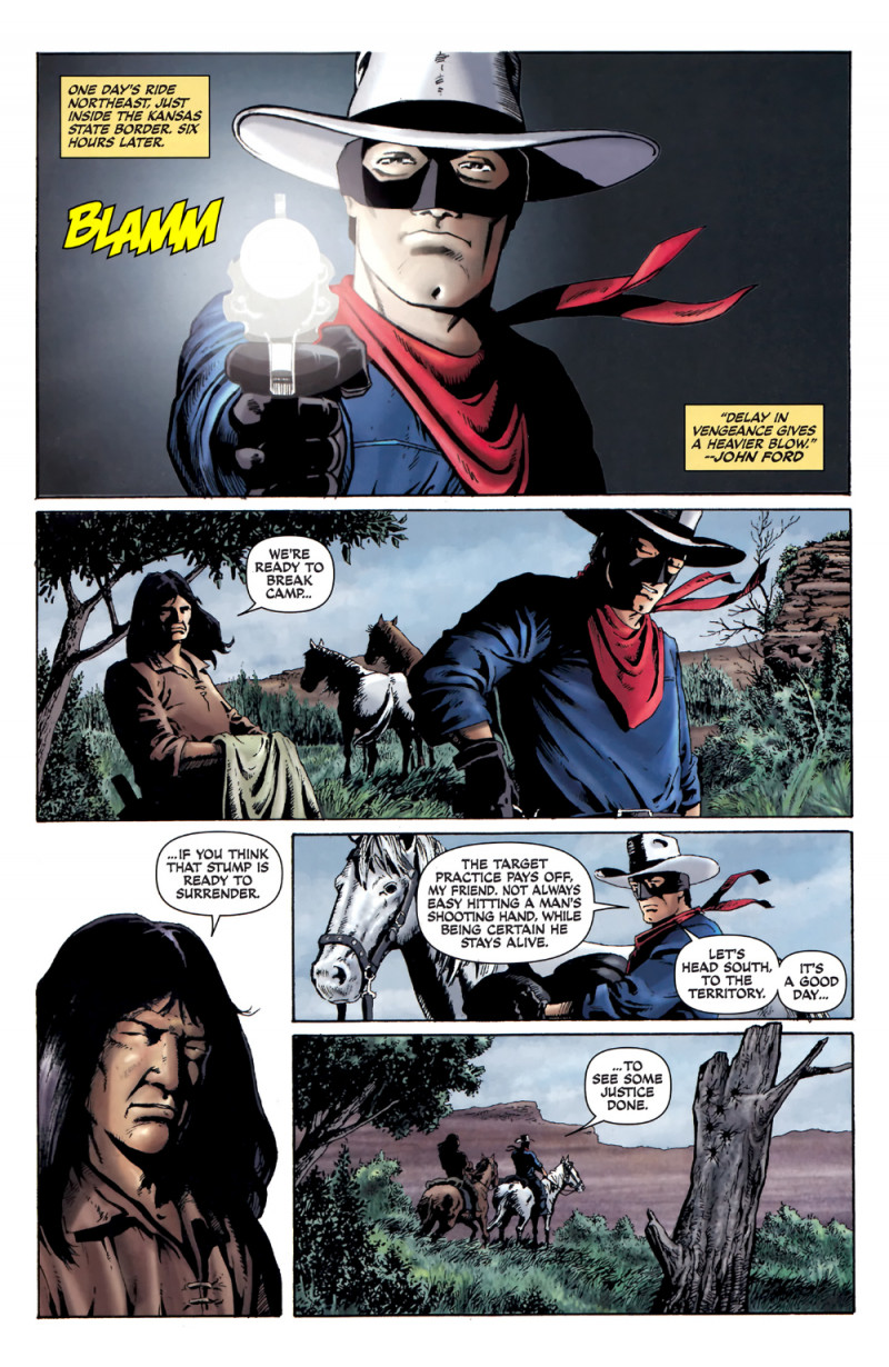 Cela fait deux mois que Lone Ranger et Tonto se sont lancés dans les sentiers du vieil ouest, à la recherche de l'injustice. Ils en ont trouvé beaucoup. Maintenant, ils rencontrent des colons qui en ont été victimes d'une manière qui remue les souvenirs de John Reid. C'est la perte, la vengeance et la rédemption alors que l'idéalisme pionnier rencontre la réalité d'une vie difficile dans la prairie!