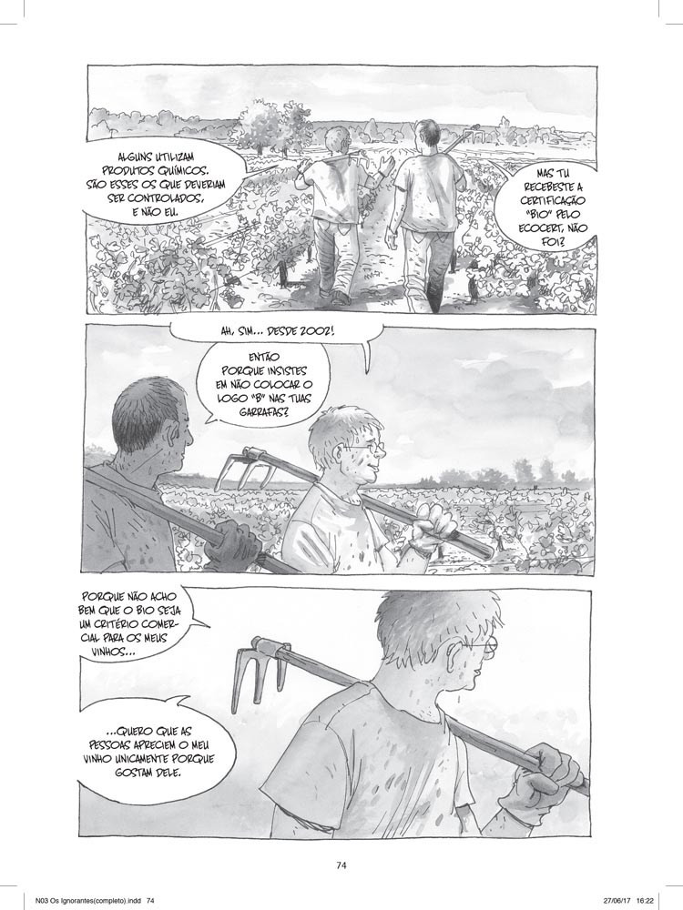 Os Ignorantes – Relato de uma Iniciação Cruzada. O que têm em comum um produtor de vinho biológico e um autor de BD? Esta obra relata a experiência de dois amigos, Étienne Davodeau, um dos maiores autores de banda desenhada francesa actual, que não sabe nada de vinhos e Richard Leroy, viticultor que quase nunca leu BD. Juntos irão descobrir a ligação entre duas áreas aparentemente tão distintas.