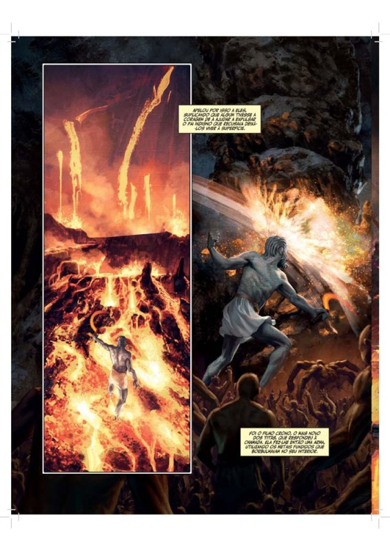 Saídos do caos primordial, Geia, a terra, e Úrano, o céu, unem-se incansavelmente e dão vida aos primeiros deuses do panteão grego: os Titãs, mas também os três primeiros Ciclopes (Raio, Relâmpago e Trovão) e os Hecatonquiros, seres imortais devotados à guerra e dotados de uma força sem par. Receando que ocupem o seu lugar, Úrano encerra os filhos no ventre da mãe, mas o mais novo, Crono, consegue libertar-se. Imbuído do mesmo receio que o seu pai, Crono engole os próprios filhos, e é novamente o mais novo, Zeus, que consegue fugir. Este liberta os seus irmãos e irmãs, dando então início à guerra dos deuses, entre os olímpicos conduzidos por Zeus e os titânicos guiados por Cronos — uma guerra terrível que decidirá se será o caos ou a harmonia a reinar no cosmos…