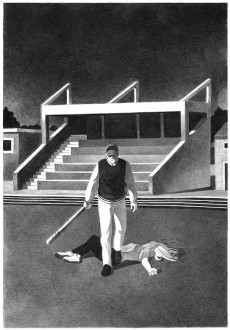 Véritable hommage au cinéma de genre américain, L’Entaille nous plonge dans le quotidien d’une petite ville de bords de mer dont la tranquillité est soudainement rompue pars l’arrivée d’un tueur en série. On y retrouve ainsi tous les codes du slasher ou du teen movie qui sont ici habilement adaptés en bande dessinée. Les planches, entièrement réalisées au crayon papier, provoquent un sentiment d’irréalité proche du rêve éveillé et nous baignent instantanément dans une ambiance feutrée.