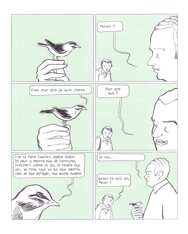 Sa vie, tout entière solitude et évitement, éclate en morceaux le jour où Mortimer, son meilleur ami, est arrêté pour trafic d'images à caractère pédophile. Dans Le Goût des oiseaux, Francisco Sousa Lobo aborde la pédophilie avec intelligence, chaque touche, comme l'écrit LL de Mars, " nous faisant lentement approcher la psyché de la figure centrale [... ] de manière à produire, très finement, plus de questionnement et de trouble que de réponses ; ce sont les mouvements de fond des représentations de l'enfance chez l'adulte qui sont décortiqués, exposés à la lumière de désirs informulables, conduits dans de beaux couloirs métaphoriques, plutôt que la lecture factuelle d'une criminalité sexuelle tangible ".
