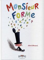 Un drôle de chapeau sur la tête et la tête dans les nuages, Monsieur Forme déambule dans les rues, où il se cogne tour à tour dans panneaux et lampadaires, et s'aperçoit étonné qu'il sonne creux ! Alarmés par ce bruit bizarre, les passants le harcèlent de questions, ce qui le pousse à consulter un médecin. Son diagnostic est catégorique : Monsieur Forme est vide. Pour se remplir, il engloutit tout ce qui se trouve à sa portée : livres, nourriture ; mais rien n'y fait. Sauf peut-être le remède de l'amour…
