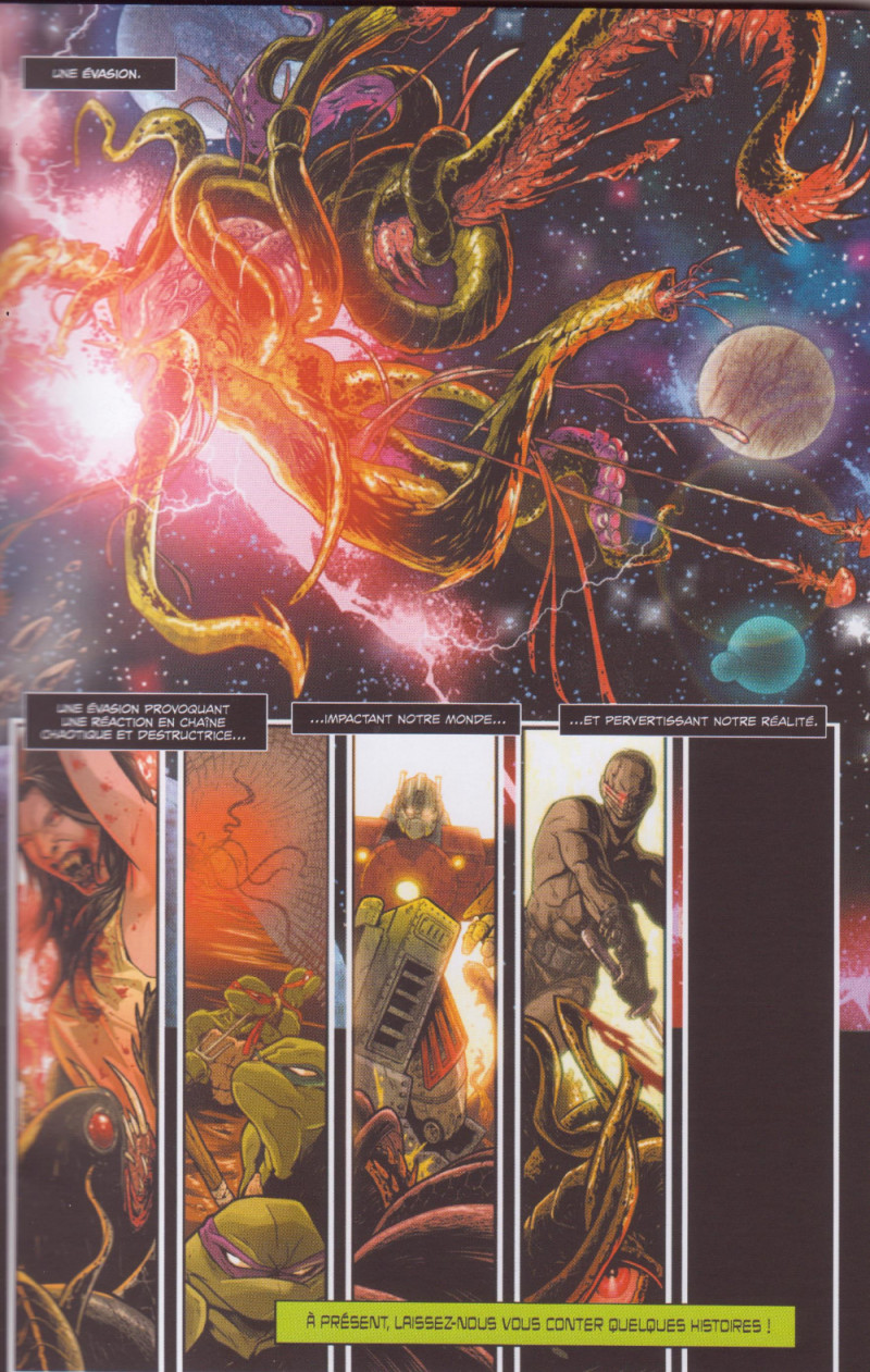 Au pôle nord, les vampires de 30 Jours de Nuit sont encore plus flippants que d’habitude… Les égoûts de New-York réservent de sombres rencontres aux Tortues Ninja Raphael, Leonardo, Michelangelo et Donatello… Optimus Prime et Nikola Tesla affrontent des forces obscures dans une histoire qui fait suite à l’album Transformers : Hearts of Steel… et Cobra joue avec les puissances occultes pour booster ses forces contre G.I. Joe…