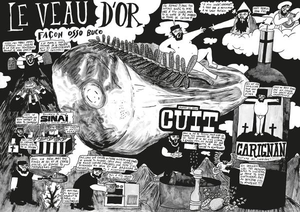 Attention, voici un livre hors normes ! Hors normes par ses dimensions, par son concept et par son contenu. Mélange entre l'illustration humoristique et le contenu culinaire, la bande dessinée et le livre de recettes, Banquets ! est un livre qui se lit, qui se cuisine, qui se dévore. Sur chaque planche l'avatar du chef Roland Theimer, mis en image par son ami illustrateur Théophile Sutter, se promène et se démène pour nous expliquer les recettes idéales d'un banquet entre amis. Pensé pendant le premier confinement, l'ouvrage prend forme lorsque les deux auteurs se rendent compte du plaisir qu'il y a à retrouver les siens autour d'une grande tablée après des semaines d'absence. Épaule d'agnelle façon naufragé, délice de saucisse sur lentilles et navets, cochon du beaujolpif, homard au lard, ventrèche de thon au caviar de citron caviar... Les recettes sont festives, conviviales, joyeuses et se réalisent à plusieurs, entre copains. L'ouvrage est généreux, les plats sont délicieux, on se régale d'avance en tournant les pages de ce superbe objet.