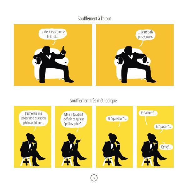 Soufflement de Narines aborde, en près de 180 strips, les questionnements métaphysico-humoristes sur le et les sens de la vie, sur les relations interpersonnelles, etc, sous la forme d'aphorismes. Le tout est habillé d'un dessin élégant et sobre qui met en avant les textes et traits d'esprit et avec des personnages en silhouettes rendus ainsi universels, tout comme les questionnements évoqués.