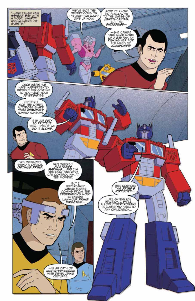 Un crossover reprenant fidèlement les designs et l’esprit de ces deux œuvres télévisées qui ont marqué leurs époques, pour les amener vers un futur commun inattendu, où l’USS Enterprise se révèlera être un Autobot !