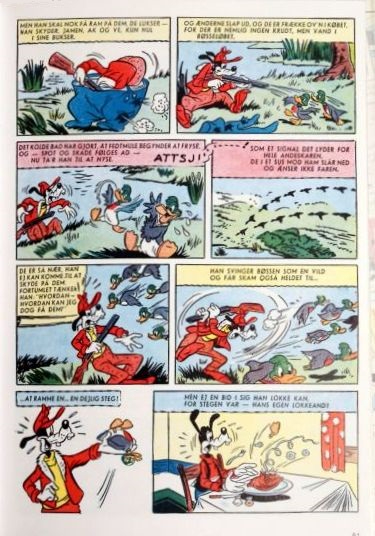 Le premier numéro comptait trente-six pages et coûtait 0,75 DDK, lors de sa sortie en mars 1949. On peut y retrouver à l'origine des bandes dessinées de dix planches de Carl Barks.